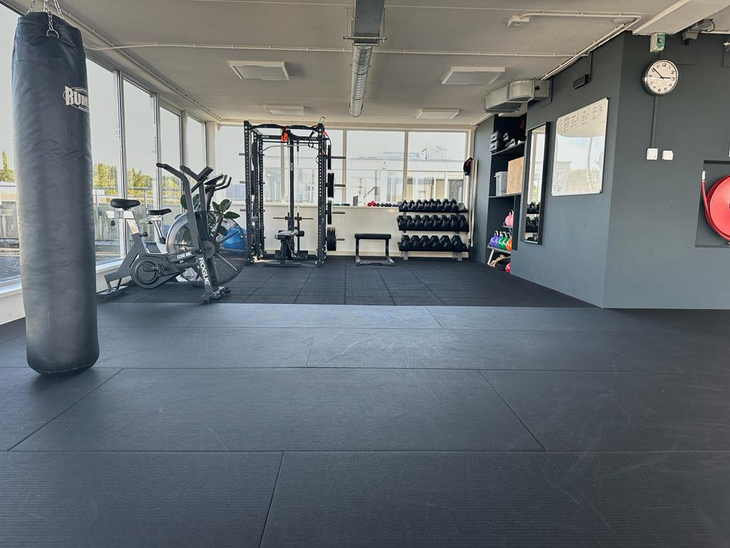 Voorzien van zowel judomatten als rubberen sportmatten. Uitgerust met gewichten en functioneel trainingsmateriaal, ideaal voor personal training of circuittraining.